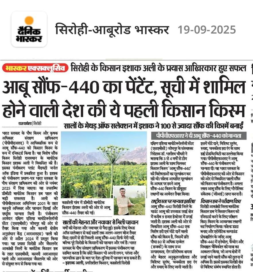 Read Moreआबू सौंफ -440 का पेटेंट, सूची में शामिल होने होने वाली देश की ये पहली किसान किस्म